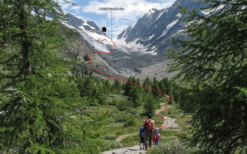 Lötschenlücke und dem Sattelhorn. Ab der Anenhütte beginnt der